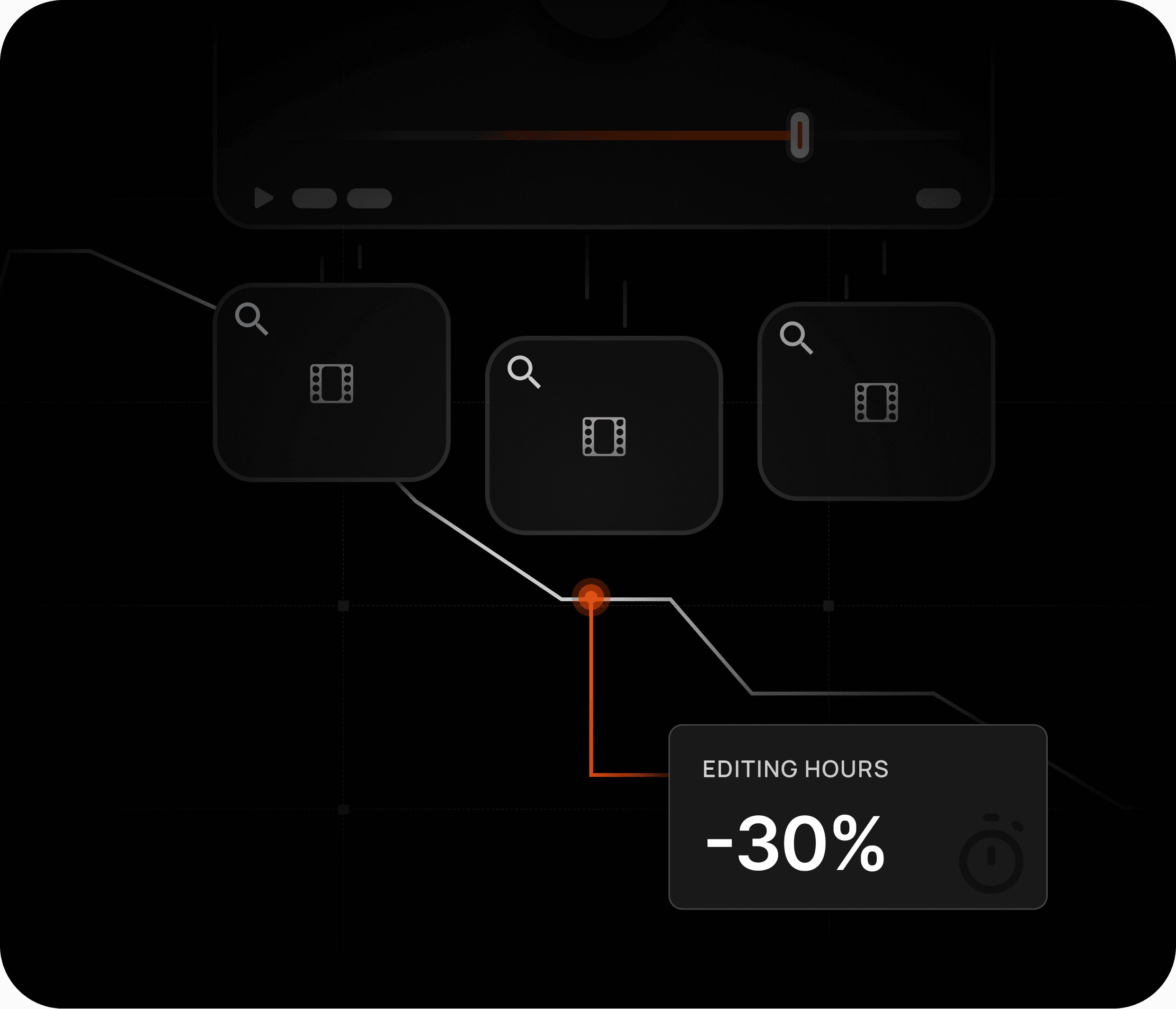Stream in days, not months. Cut down production time dramatically with intelligent search and instant clip generation.