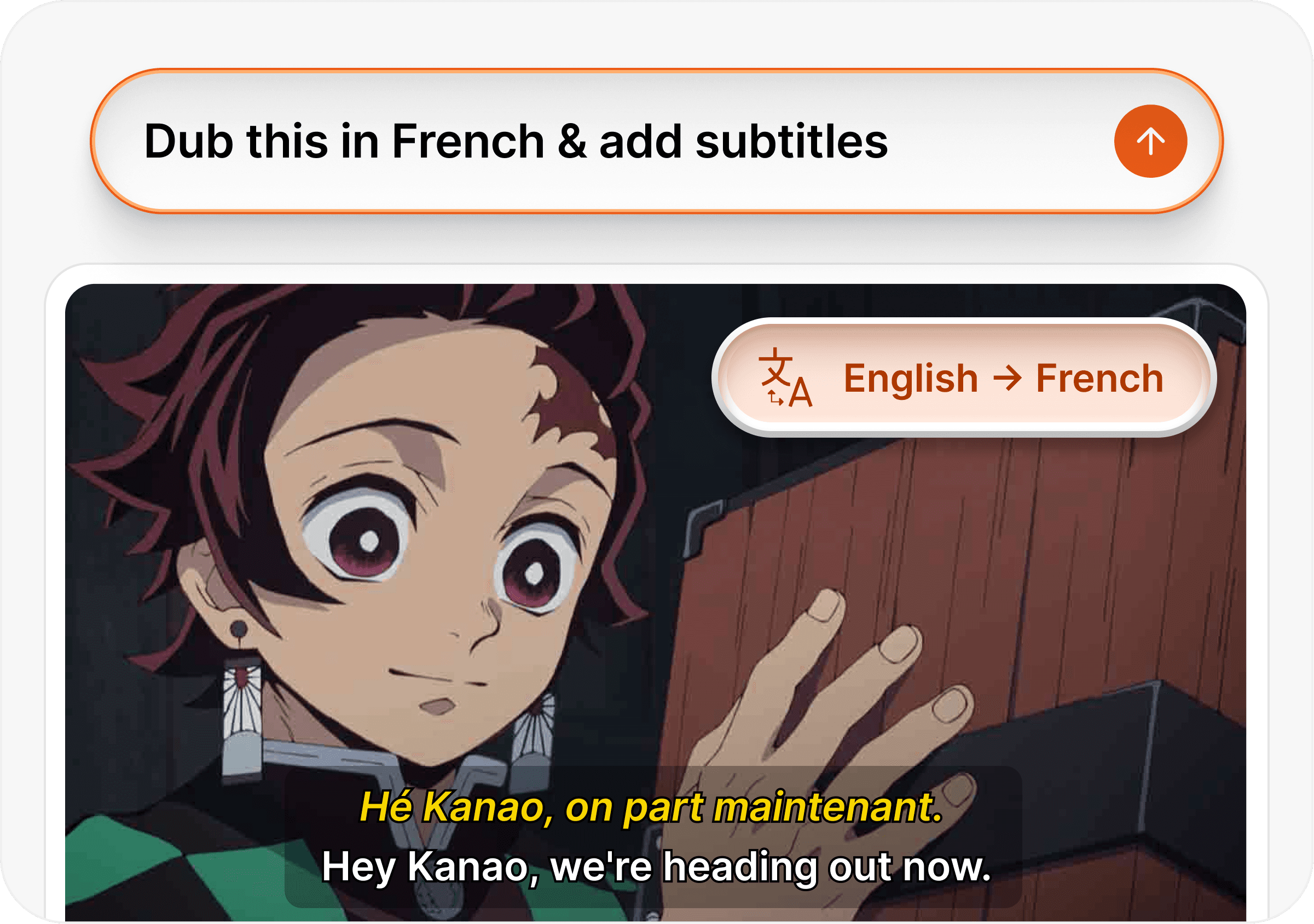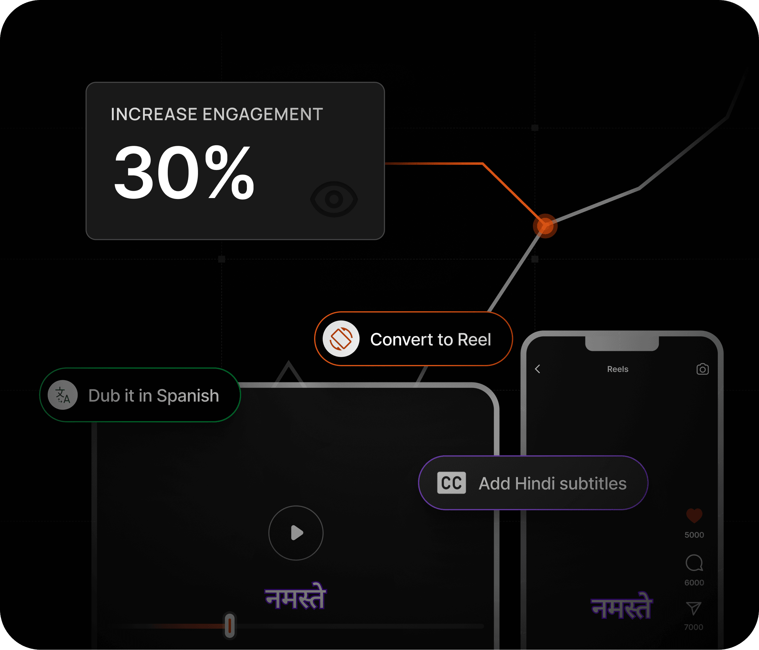 Search, clip, and turn long-form into dubbed, subtitled reels that travel across markets and platforms, driving more views from the same archive